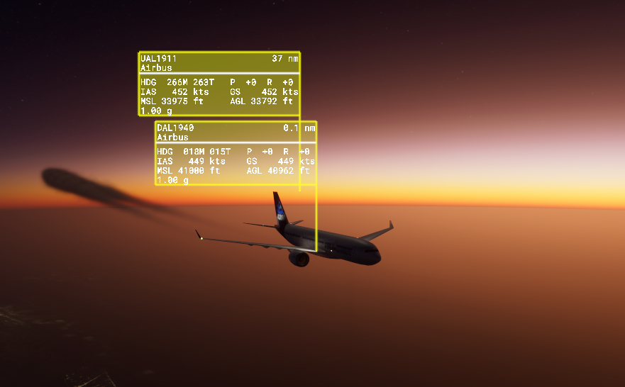 An example of an earlier version of ADS-B plugin. The airliner is shown in ARMOR.