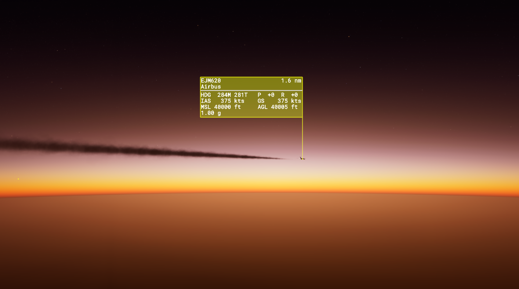 ADS-B Plugin does not merely place the entity at the reported location, it leverages MACE’s aerodynamic modelling to “dead reckon” between updates, creating a smooth flight, if the updates are consistently received.
